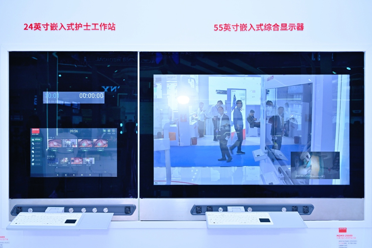 在现代医疗中,外科显示器作为外科医生精准诊断和手术操作的重要工具,扮演着举足轻重的角色。巴可在本届CMEF中重点展示了可以应用于内科的消化内镜中心27英寸FHD多模态医疗级ITE显示器MDAC-2327,4K外科手术和内窥镜显示器MDAC-8431和4K 3D外科医用监视器MDFC-8232,以及55英寸4K UHD多模态医疗级ITE显示器MDAC-8455等,满足现代手术室的高清、精准影像显示需求。